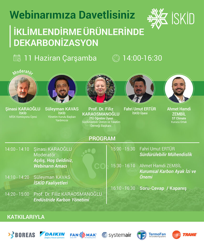 İSKİD Merkezi İklimlendirme Sistemleri Komisyonu, 11 Haziran Çarşamba günü saat 14:00'te, "İklimlendirme Ürünlerinde Dekarbonizasyon" konusunu işledi.